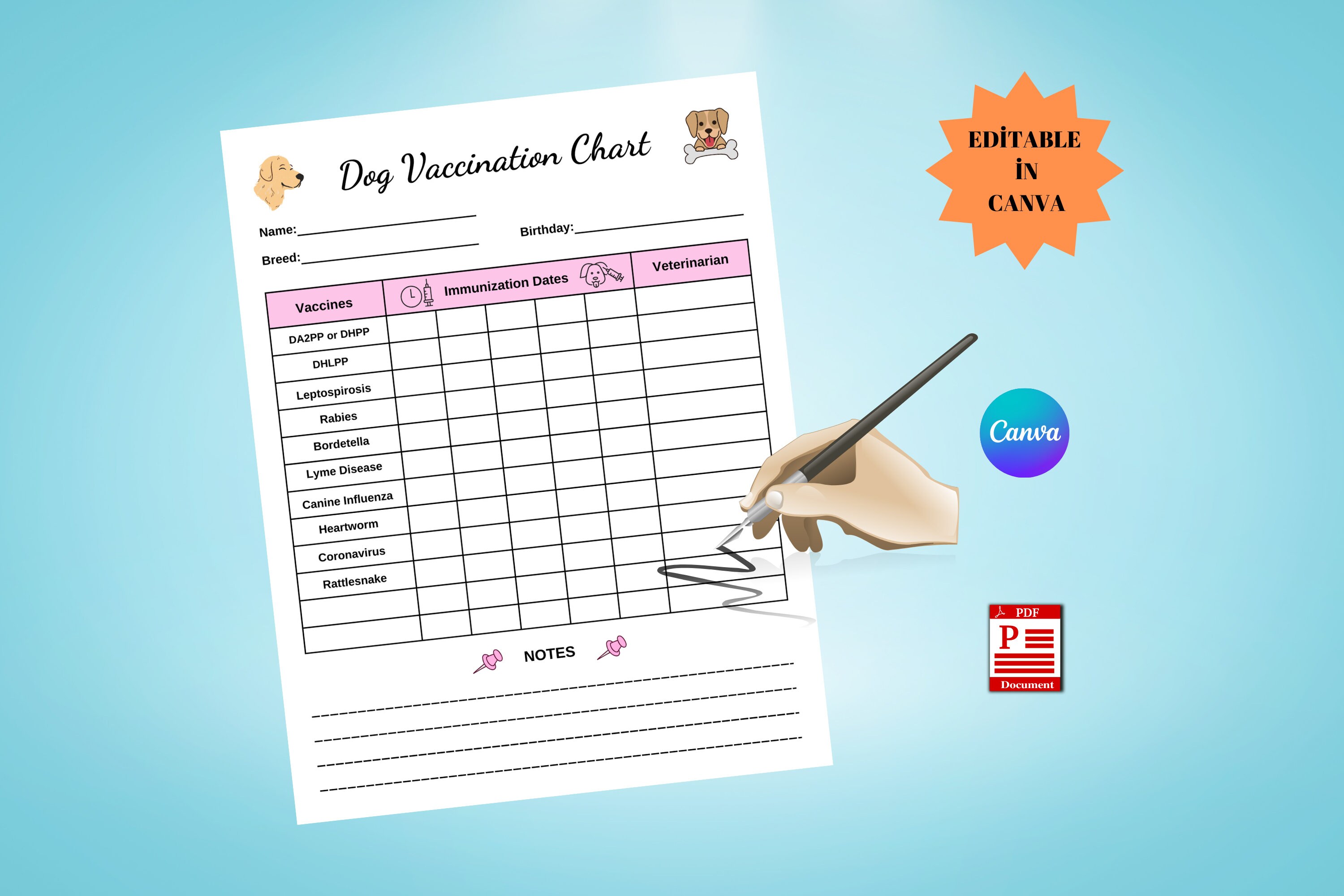 Dry Erase Dog Vaccination Chart Laminated Immunization Etsy Canada